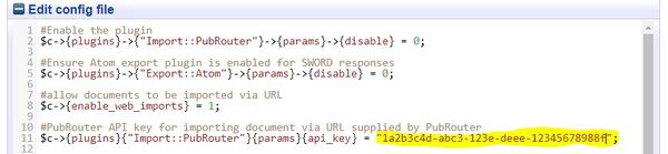 $c->{plugins}{"Import::PubRouter"}{params}{api_key} = "ENTER PUBROUTER API KEY HERE";